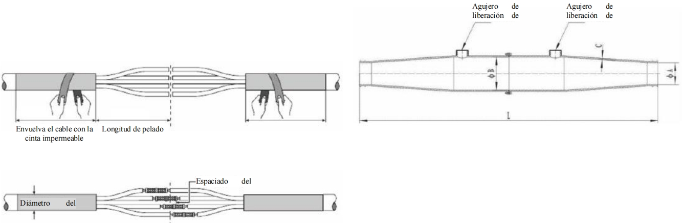 Esta serie de productos es adecuada para la impermeabilización, ignifugación, protección contra explosiones y enterramiento directo con protección contra tensión de soporte de juntas intermedias retráctiles en frío y en caliente de cables de alimentación aislados con polietileno reticulado con una sección transversal nominal de 50 a 630 mm².